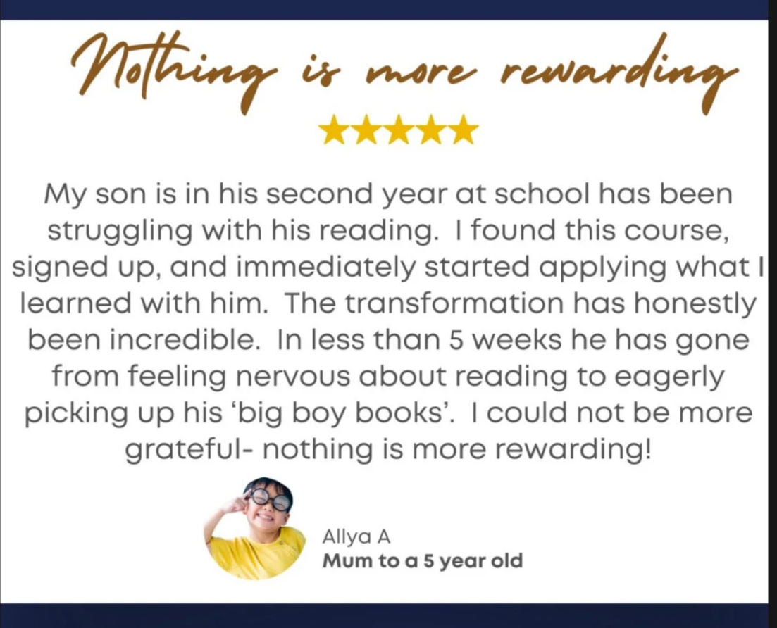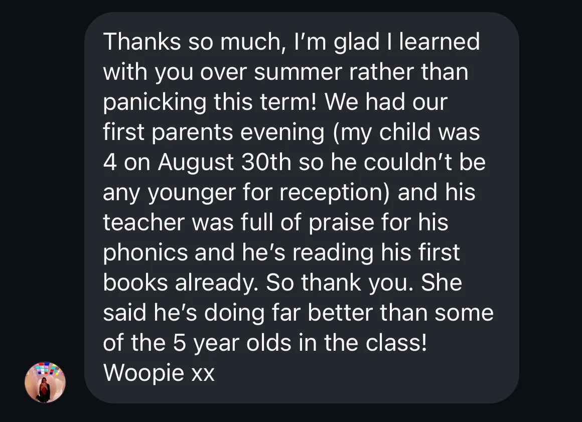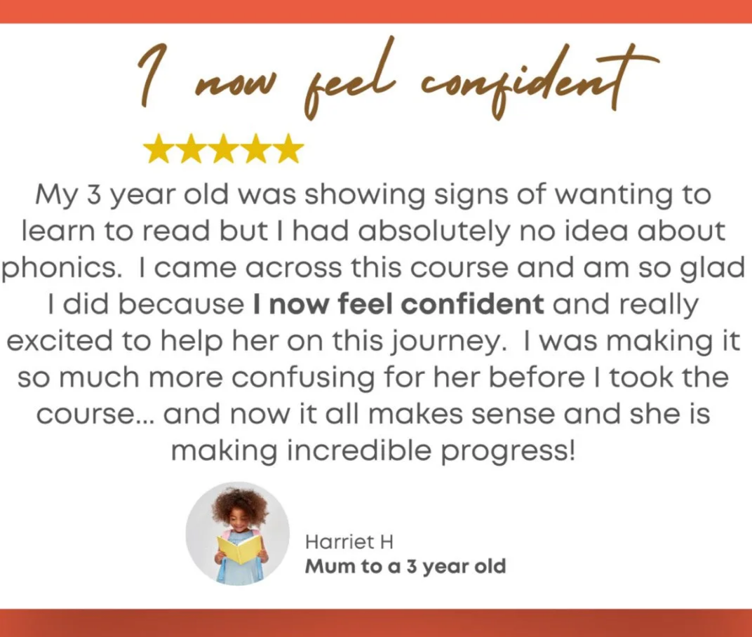 I’ve been a teacher for 15 years, specialising in reading. I’ve worked as a literacy lead, trainer, and parent reading coach — but most importantly, I’ve taught my own children (and thousands more online) to read with this exact method. Over 1,000 parents have already used it successfully, and the 5★ reviews speak for themselves.
